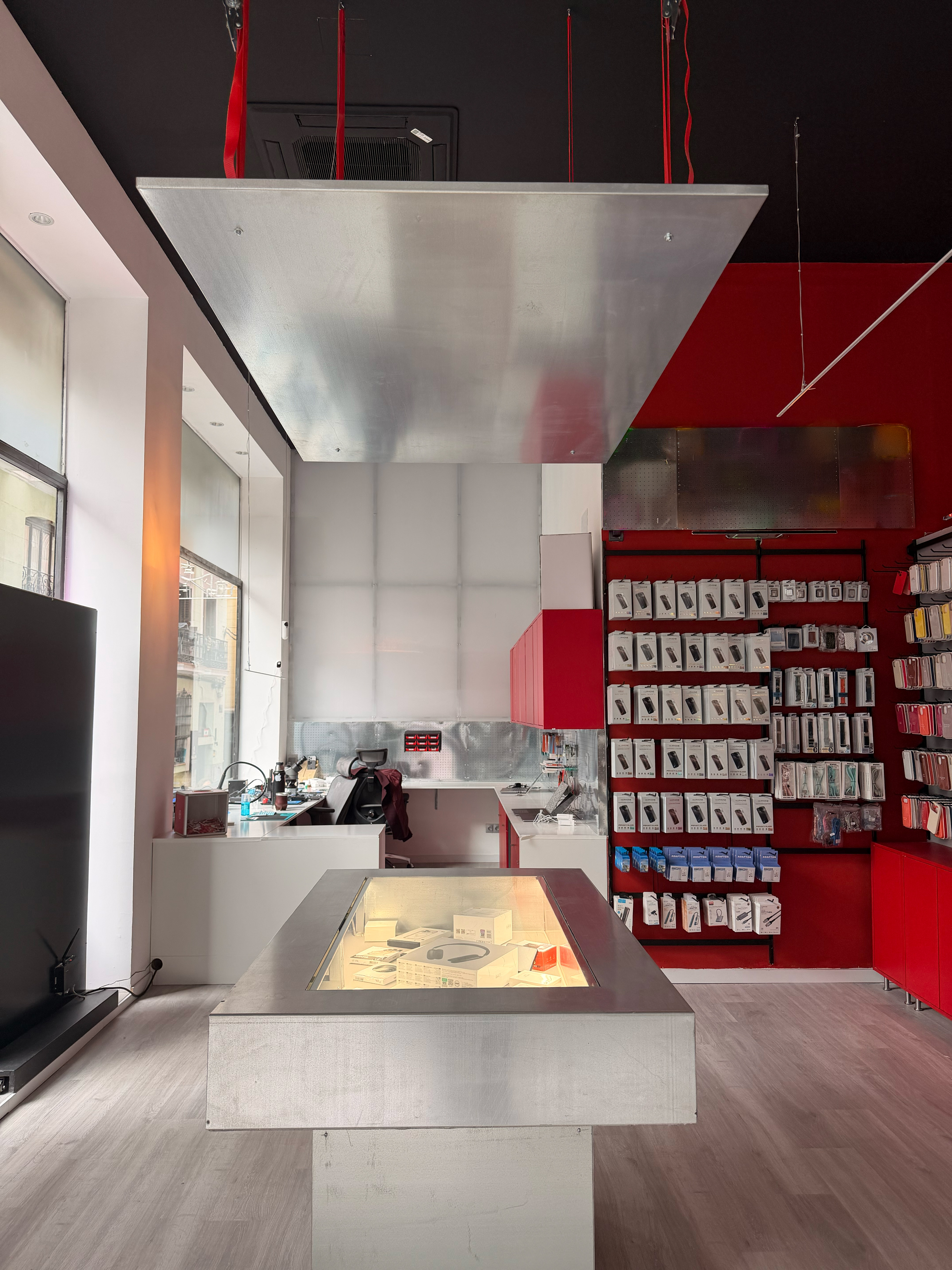 Ultra 2 es la segunda sucursal de un local de móviles en el centro de Madrid. Los dueños son nuestros amigos Zoe y Toto, y en el proyecto tuvo que condensar su personalidad: explosiva, dinámica y divertida. Manteniendo esa escencia personal proyectamos un espacio a una cuadra de Gran vía que se acomodara a lo que necesitaban.